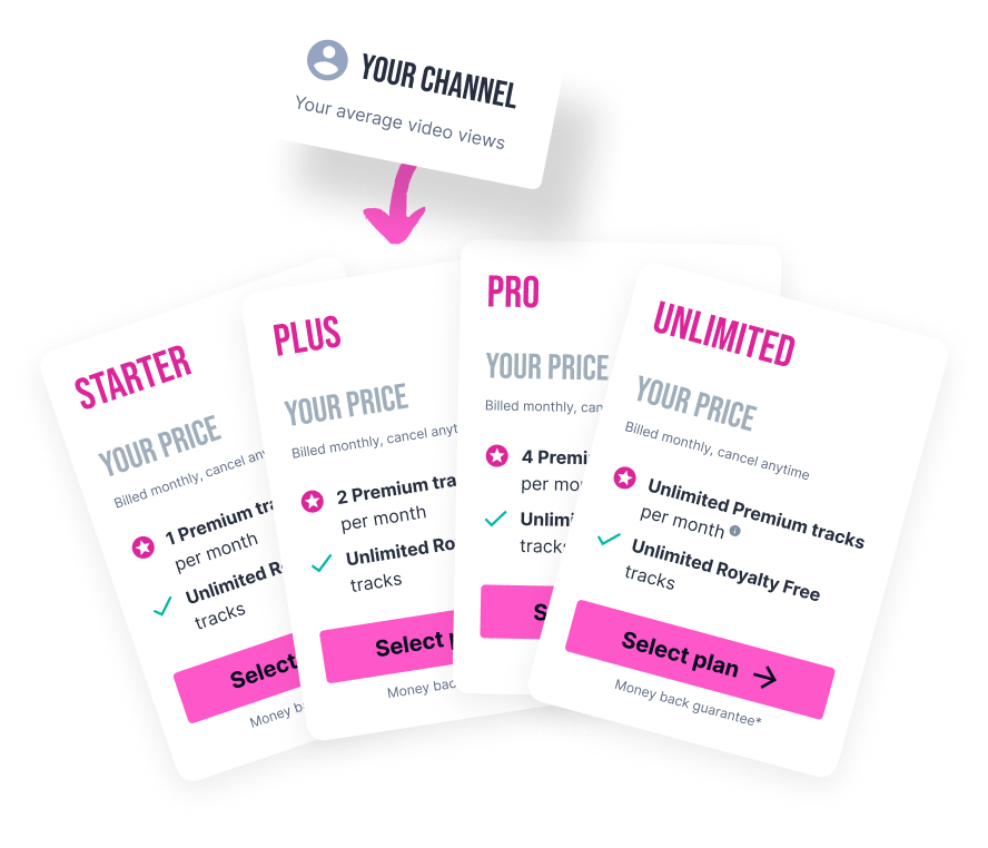 Secondly, our pricing model is built based on your average video views. This makes music affordable for everyone, even if you’re just starting your content creation journey!
